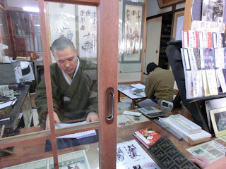 御朱印をいただきます。奥で背を向けて書いてくださっているのが小生のものです。